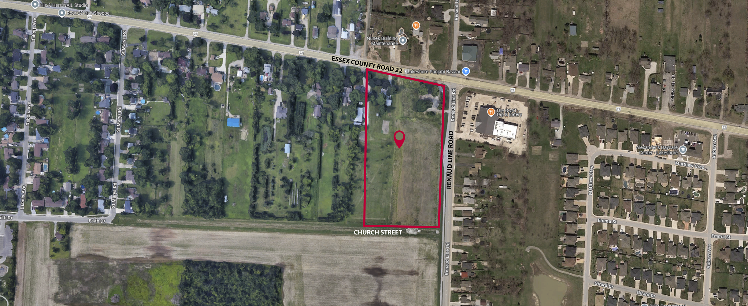 Located at 1287 County Road 22 in Belle River, approximately 35 minutes east of Windsor along Lake St. Clair, this new retail plaza serves the bedroom community of Belle River within the municipality of Lakeshore. Over 40,000 residents reside in the town of Lakeshore. Strategically positioned at the southwest corner of County Road 22 and Renaud Line Road, the site captures commuter traffic to Windsor along this major east/west corridor, which transitions into the EC Row Expressway within the city of Windsor. The centre will be anchored by a national supermarket and will include a national drug store, a national dollar store, and several restaurant and fast food operators, offering a strong retail mix in this growing, high-income community.