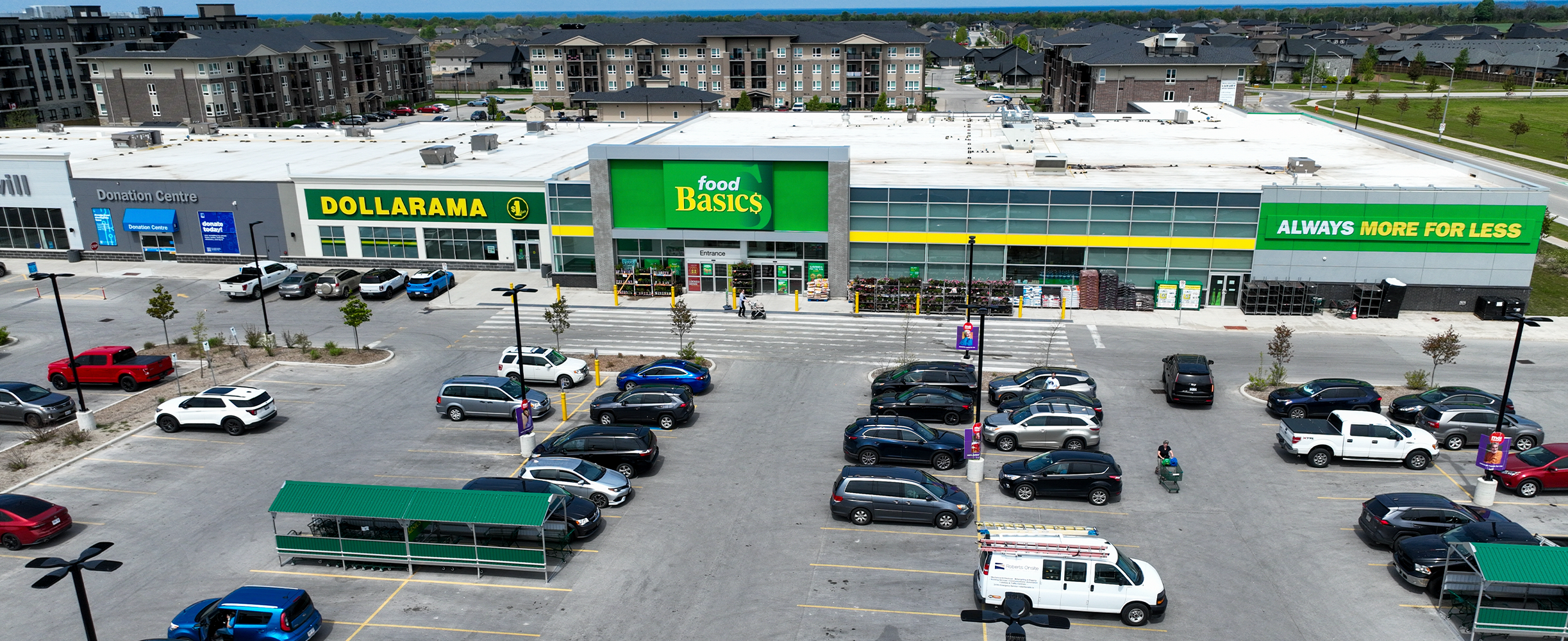 Saugeen Shores Shopping Centre is the primary retail centre in Port Elgin, a growing community situated on Lake Huron. Port Elgin benefits from being a popular summer cottage location and its close proximity to Bruce Power, the largest employer in the area, resulting in above average household income. The plaza is strategically located at the intersection of Goderich Street (Highway 21) and Devonshire Road. With excellent visibility along this major arterial route, the centre serves local residents year-round, and draws traffic from neighbouring communities such as Southampton. Just north of the site is Your Independent Grocer, Shoppers Drug Mart, several other retailers and additional shopping nearby. The tenant mix is well-balanced anchored by Food Basics, Dollarama, Goodwill, Starbucks, and Stacked Pancake House, the centre serves as the main commercial destination for residents and visitors in the area.